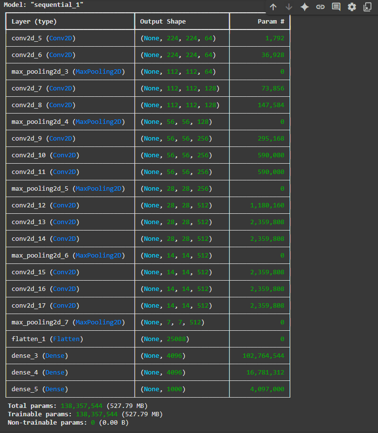 vggnet.add(layers.Dense(1000, activation='softmax'))