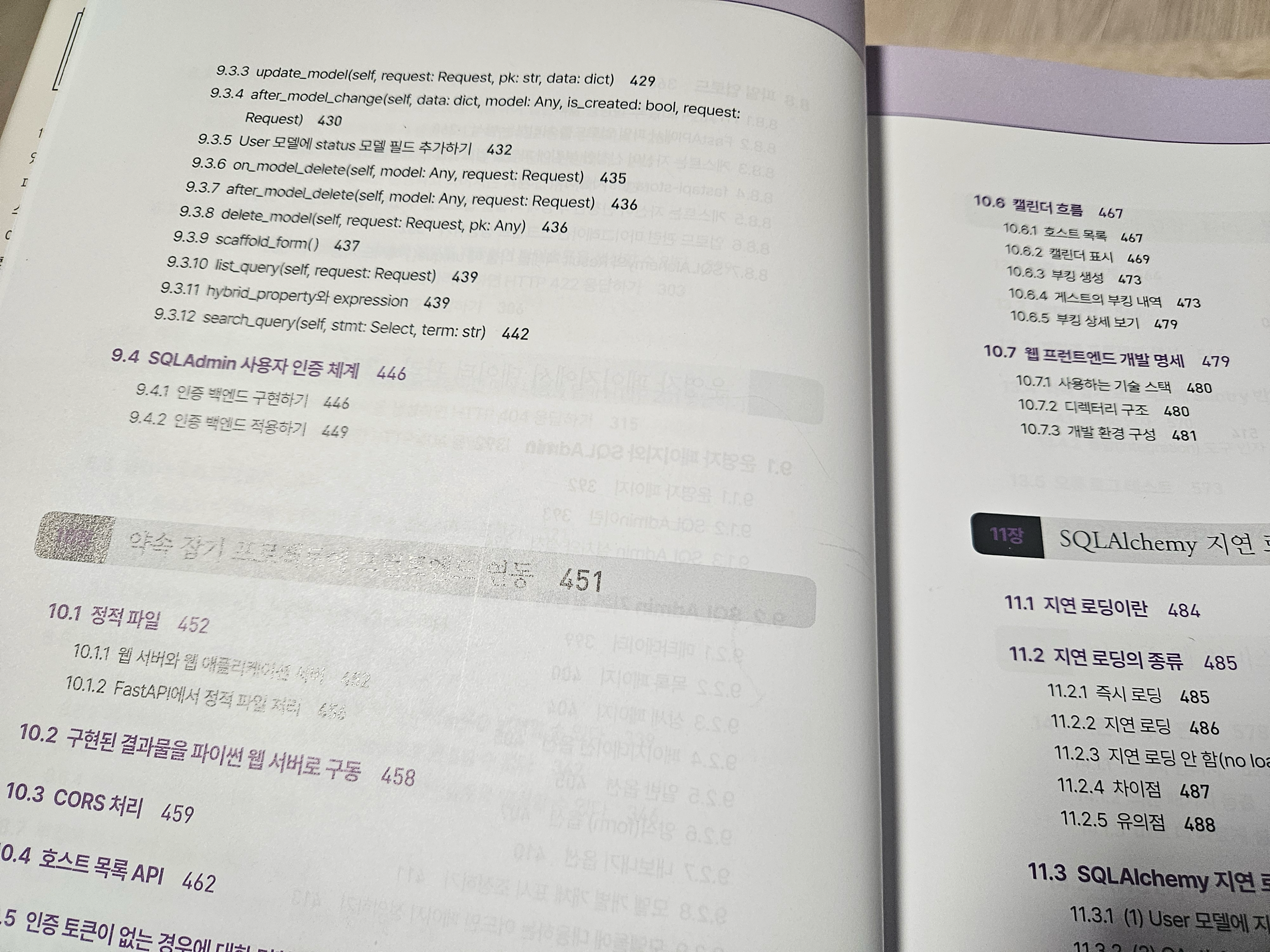 ํํํ ๊ตฌ์ฑ๋ ๋ง์์ ๋ค์์ต๋๋ค. ๋ฌด๋ ค 600ํ์ด์ง๊ฐ ๋๋ ๋ถ๋...fastapi๋ ๊ฐ๋ณ๊ณ ๋น ๋ฅธ ๊ธฐ์ ๋ก ์ ๋ช ํ ๊ฒ์ ๋ฐํด ์ฑ ์ ์๊ฐ์ด์์ผ๋ก ๋๊ป๊ณ ๋ฌด๊ฒ์ต๋๋ค. ๋๊ป๋ง ๋ณด์๋, ๊ทธ๋ฆฌ๊ณ ๋ชฉ์ฐจ๋ง ํ์ด๋ณด์๋ ๊ฐ๋ฐ ์ ๋ฐ์ ์ ๋ง ๊ผผ๊ผผํ๊ฒ ๋ค๋ฃจ๊ณ ์๋ค๋ ๋๋์ ๋ฐ์ ์ ์์ต๋๋ค.