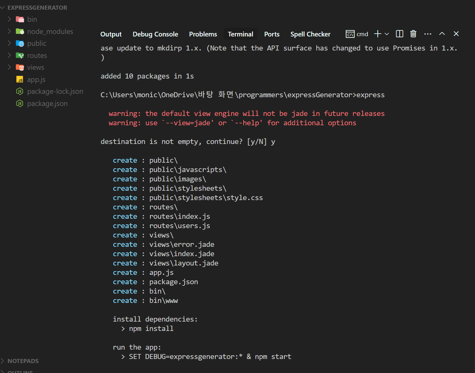 express-generator ์์ด ๋ง๋ค๋ ค๋ฉด ๋ค์๊ณผ ๊ฐ์ ์ ์ฐจ๊ฐ ํ์ํ๋ค: