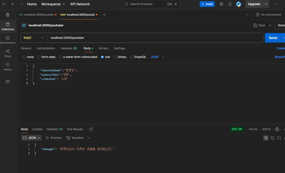 - req: body(channelName,sub,videoNum)- res: channelTitle ๋ ์ ํ๋ฒ ์ํ์ ์์ํฉ๋๋ค.