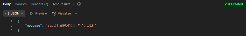 | res | 201: ${name} ๋ ํ์๊ฐ์