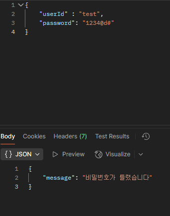return res.status(401).json({ message: "๋น๋ฐ๋ฒํธ๊ฐ ํ๋ ธ์ต๋๋ค" });