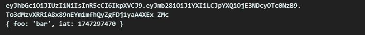 | Payload | ์ค์ ์ธ์ฆ ์ ๋ณด(ํด๋ ์) ํฌํจ | { "userId": 123, "admin": true, "iat": 1234567890 } |